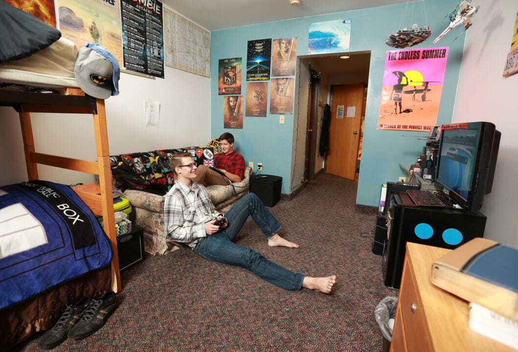The learning that happens during late-night conversations in the residence hall lounges is immensely valuable. Residential students live in two residential halls, Schaal and Timmer, or in the on-campus Holt Apartments. Each residence hall offers a lounge with a tv, soft seating, and a full kitchen.